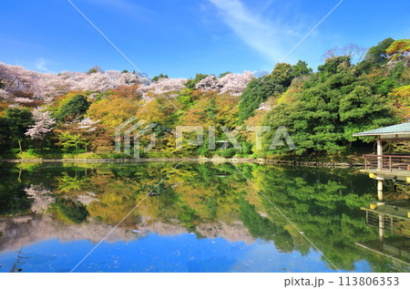 【富山県】晴天の高岡古城公園と満開の桜(北内濠)
