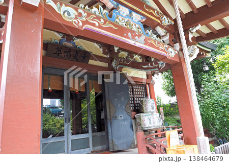 東京、足立区、路地裏にある鳥居と社殿 千住箭弓稲荷神社