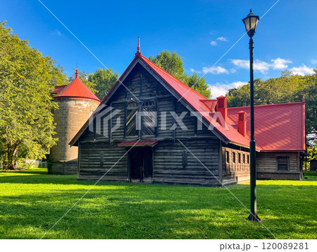 北海道・北海道大学・札幌農学校第2農場・青空に赤い屋根が眩しい牧牛舎・札幌市