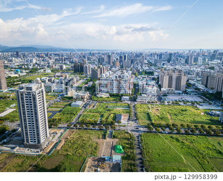 台中市北屯区十四期区画整理地区の都市開発空撮、台中市、台湾