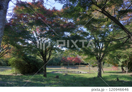 屋島北嶺の山上の千間堂広場のビオトープ と紅葉