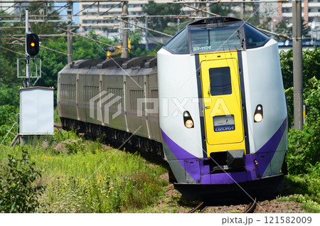 千歳線北広島市内を函館へ向けて快走する特急「北斗」