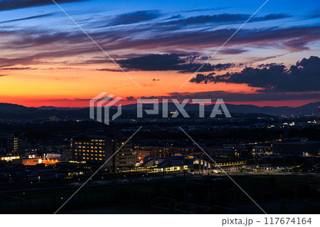 京都府最南端木津川市城山台からの夕景 木津の街灯りと夕焼けの残照 木津の街を見下ろす高台にて#5