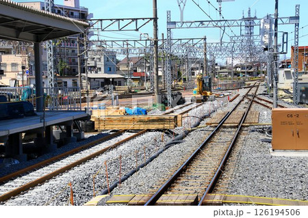 高架化に向けた線路切替工事を終え旧1番線ホームが撤去されつつある『春日部駅』上り本線