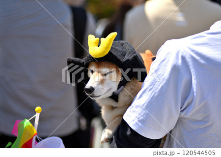 関東・小田原北条五代祭り(北條五代祭り)・戦国時代の武者行列を眺める観光犬・神奈川県小田原市