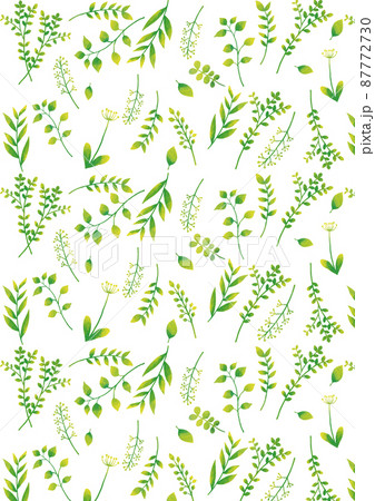 北欧風のシンプルな花とリーフ柄 緑系 イラストセット