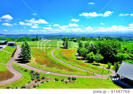 美瑛北西の丘展望公園からの初夏の北の大地の風景