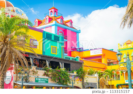 北谷 街並み 沖縄観光 旅行 南国リゾート 青空 快晴 カラフル