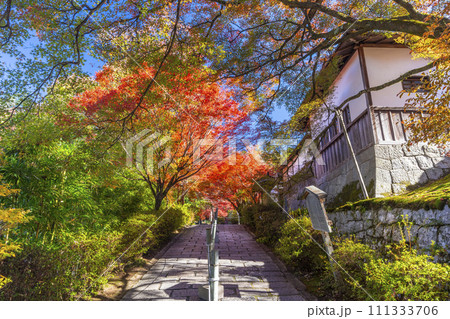 秋の京都 曼殊院 紅葉に包まれた北通用門