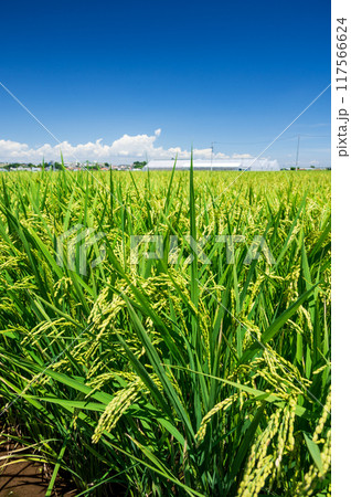 平塚のイネ 青空と稲 お米栽培