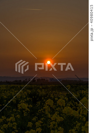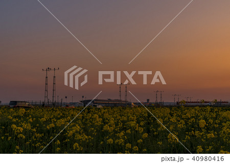 仙台空港 夕方の菜の花畑 canola flower field in natori japan