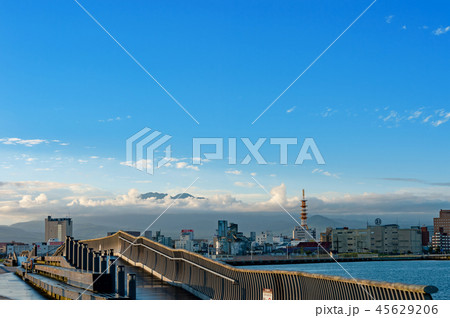 「青森県」青空が広がる八戸港・八戸市