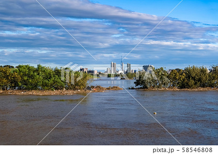 増水した荒川 埼玉県川口市 令和元年台風第19号