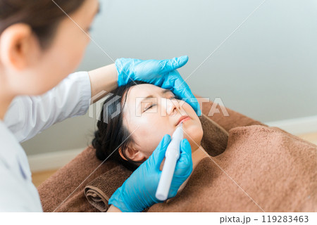 唇のアートメイクの施術を受ける女性(リップアートメイク)