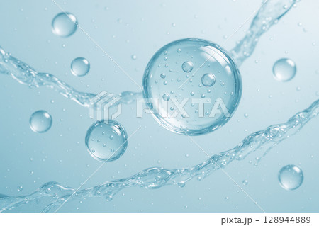 ヒアルロン酸をイメージした透明な水の球体と波紋