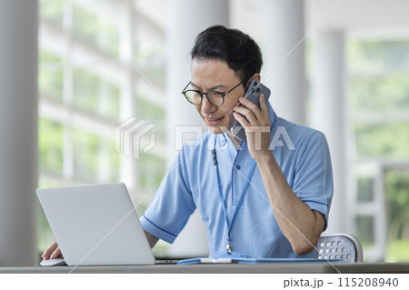 スクラブを着た医者・医師・看護師・医療従事者・ドクター・作業療法士・理学療法士の男女