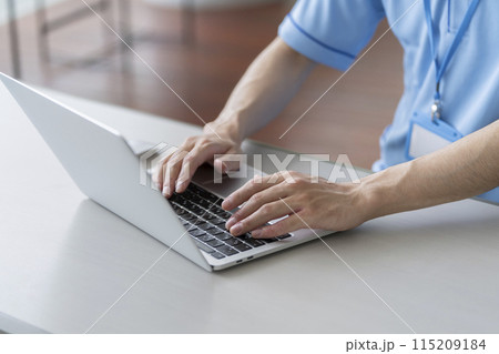 ノートパソコンで作業をする施設職員の手元 イメージ