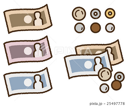 シンプルな日本のお金(紙幣・貨幣)のイラスト