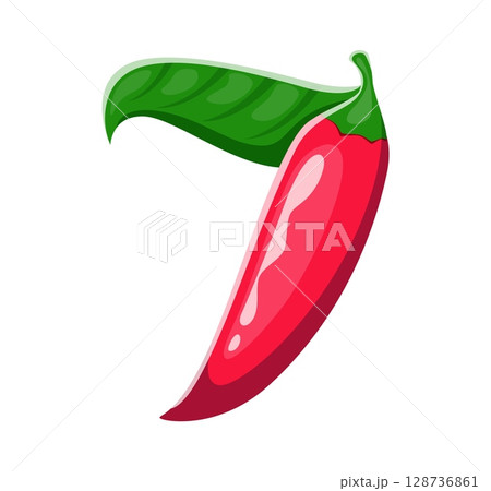 Day of the Dead font hot chili pepper digit 7 seven. Latin America death festival typeface vector figure, Dia de Los Muertos celebration typeface number. Day of the Dead holiday type numeral symbol