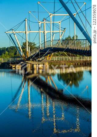 十二町潟横断橋は、ダイナミックな景観と美しい幾何学模様で公園のシンボル