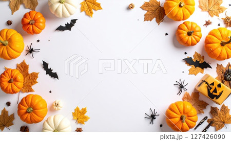 《AI画像》ハロウィンイメージ パンプキンを並べたフレーム素材