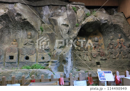 国宝臼杵石仏、ホキ石仏第一群、第一龕、第二龕、第三龕「如来三尊像」と第四龕「地蔵十王像」