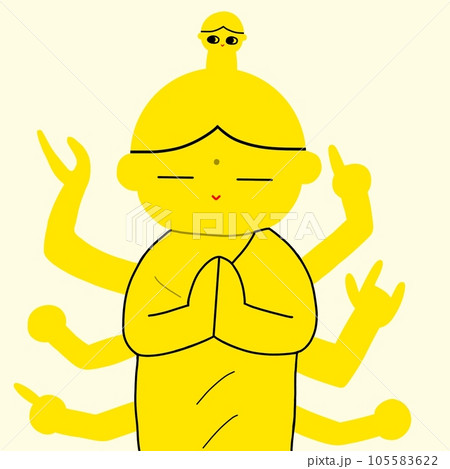 千手観音の墨絵イラスト