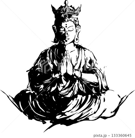 観音様の墨絵イラスト