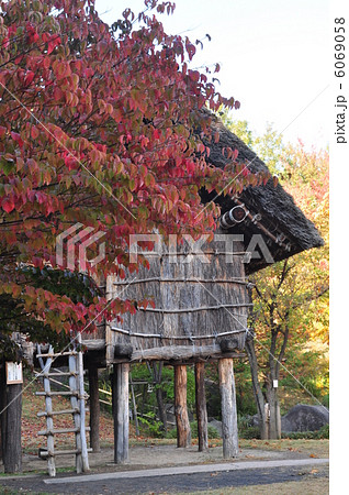 黄葉と高床式住居