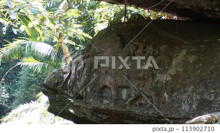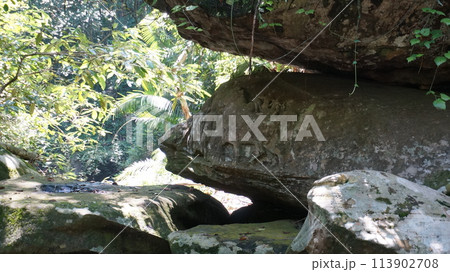 滝にあるリンガとヒンドゥー教の神々の彫刻【カンボジア・クバール・スピアン】