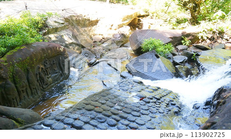 光の反射で美しいクバール・スピアンの岩床にある千本のリンガ【カンボジア】