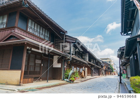 富山県高岡市 古民家が並ぶ金屋町通り千本格子の家並み 鋳物資料館からの眺め