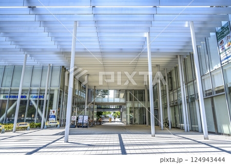 日本の東京都市景観 夏日。東急病院併設の東急電鉄 大岡山駅・駅舎などを望む