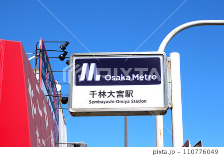 千林商店街アーケードの地下鉄千林大宮駅への道案内のサインボード 大阪市旭区