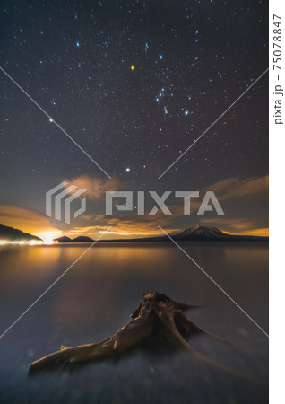 支笏湖 切り株とオリオン座