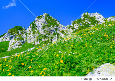 岩峰と花畑