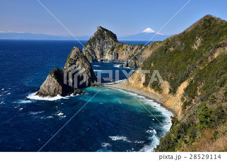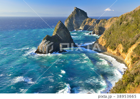 (静岡県)西伊豆の海岸線・千貫門と烏帽子山・富士山