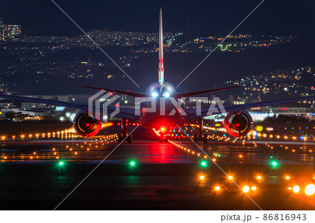 伊丹空港の夜景 離陸直前の飛行機 大阪府豊中市