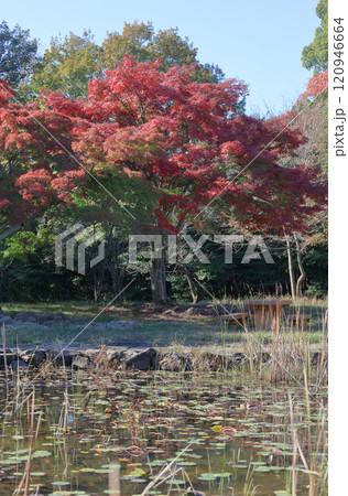 屋島北嶺の山上の千間堂広場のビオトープ と紅葉