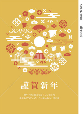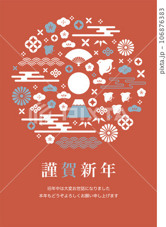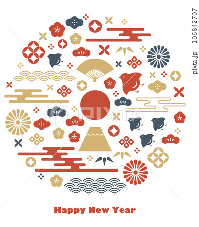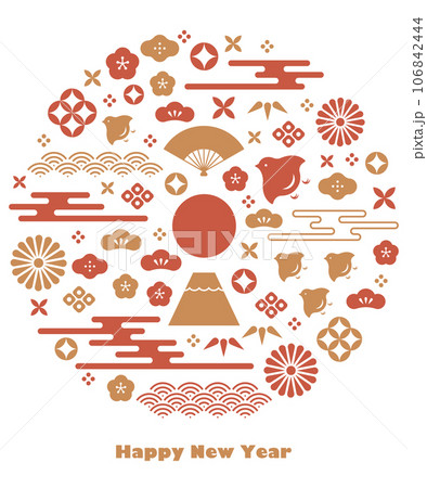 お正月・年賀状などに使えるイラスト素材 ベクター 円形配置 新春 初春 富士山 千鳥