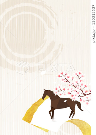 午年 馬年 年賀状テンプレート 折り紙の馬と和風イメージ