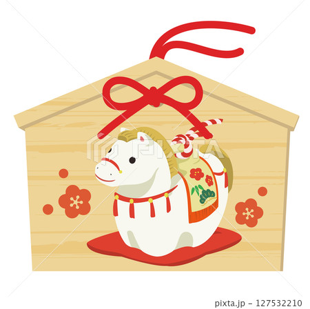 かわいい馬の絵馬のイラスト、午年の年賀状素材