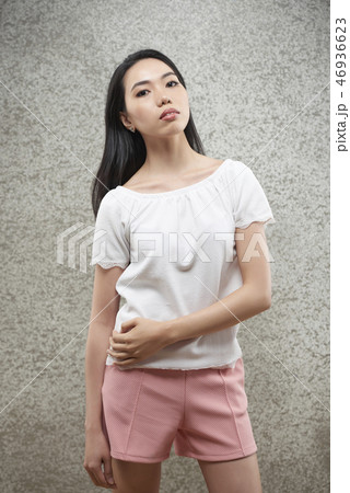 Happy smiling Asian beautiful young woman standing in the morning garden.