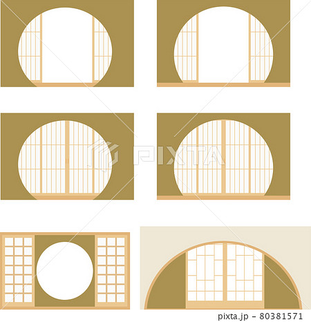 丸型の障子イラストセット ベクター 丸型 半円 和
