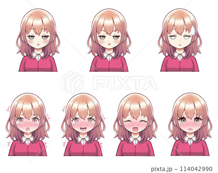 色々な表情のアニメ系女子アイコンイラストセット(成人向け)