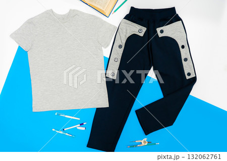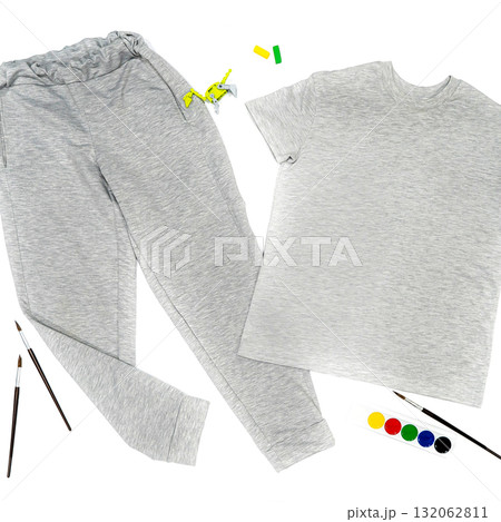 Blank male and female round neck raglan t-shirt and sweatpants in front, back views. Clothing templates. Fashion set. Casual, sport style. Active wear. illustration. Isolated on white.