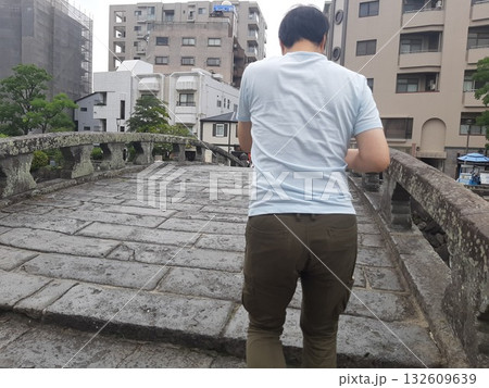 男性の後ろ姿 男性 一人 公園を歩く男性