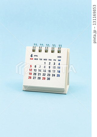 畳の上の卓上カレンダーの素材写真 2026年4月のカレンダー
