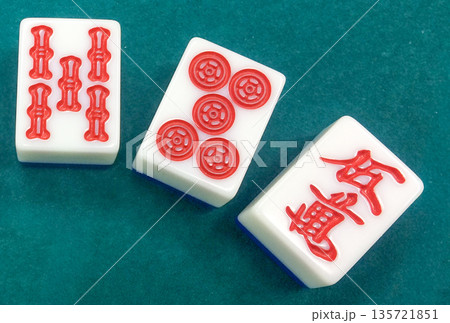 赤ドラ、赤五、ポッチ牌の麻雀牌のクローズアップ