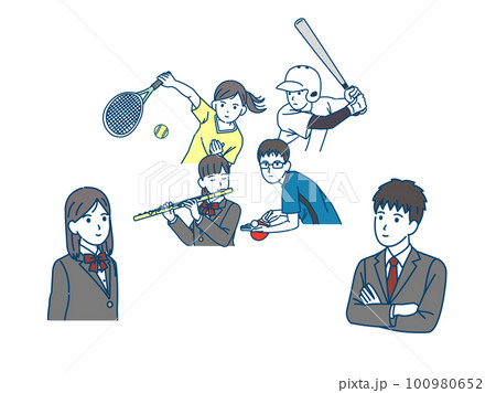 様々な部活動をする生徒たちのイラスト